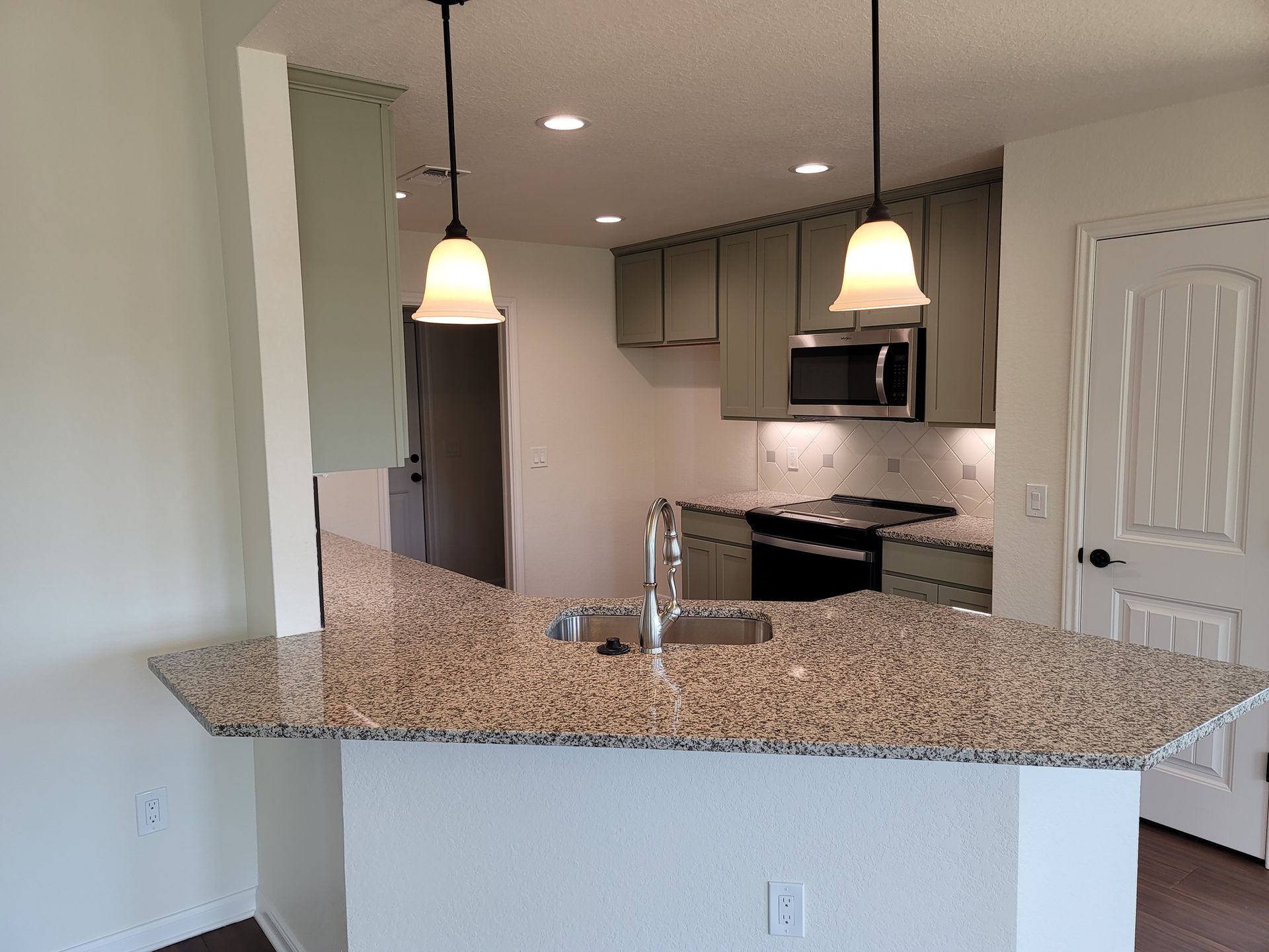 We've changed up the 1702 Hampton plan to add an additional room where the Dining Room is (not pictured). The new room is perfect for an office, and takes advantage of the hill view by having glass french doors that open into the living room. We've also added in a brand new electric fireplace, which really kicks up the wow factor. We can't wait to show everyone the finished product!