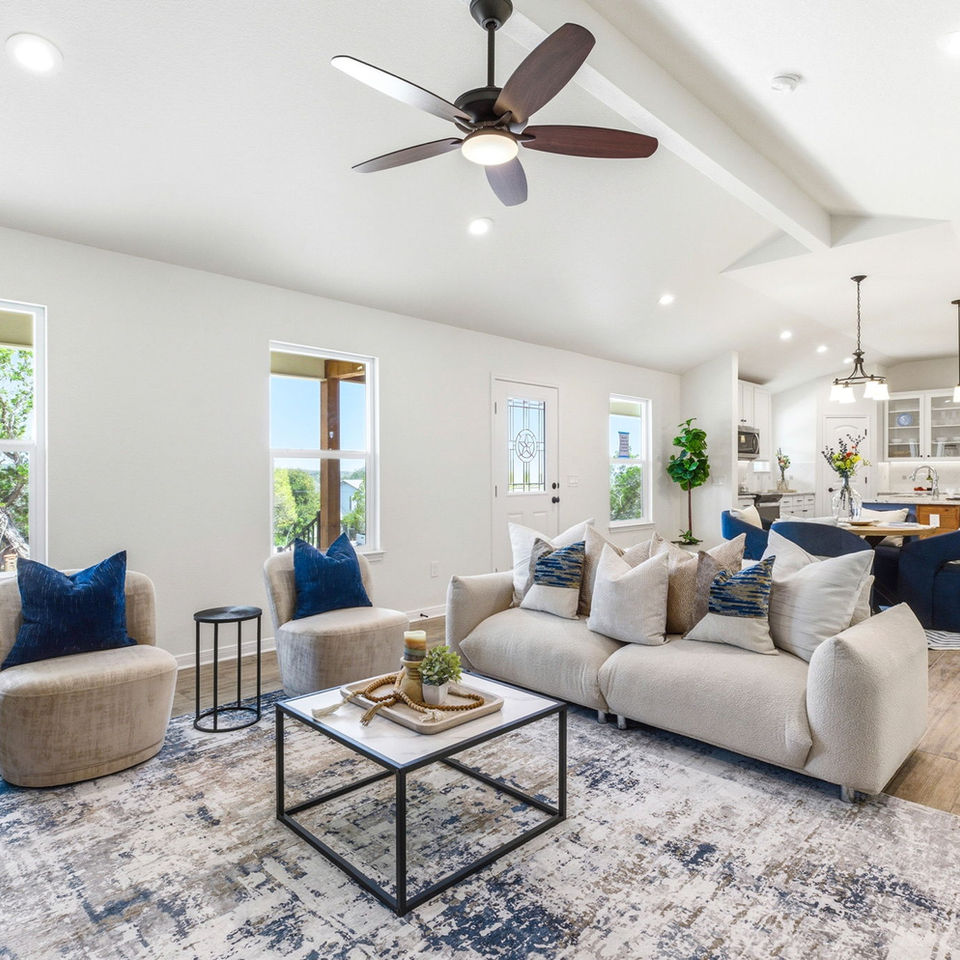 Many small but exciting upgrades have been added to our new Heritage plan. Please notice the new mud and utility room as you enter the house from the garage. The large front porch now features a gabled entry into the home. The tall ceilings make the living area seem very spacious. Please note the 4' X 8' granite countertop in the Island kitchen. Breathtaking Hill Country views will be enhanced with 5 large windows in the living and dining area.