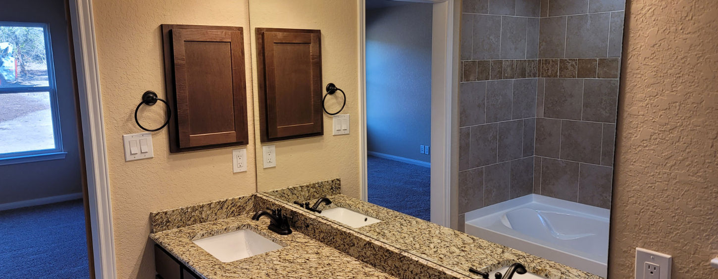 ### One Nation features our very popular 3 bedroom, 2 bath, 2 car garage, 1717 square foot Hampton floor plan on a beautiful 1 acre lot. This new home comes with granite counter tops, stainless steel appliances, rustic bronze fixtures, hardwood flooring, and many more upgrades. The exterior features limestone wainscoting and cedar timber accents with a spacious front porch. Located just minutes from schools, the boat docks at Potters Creek Park. You’ll find everything you need close at hand. Just imagine yourself relaxing outside on the spacious porch admiring your majestic oak trees every night in this beautiful hill country home.
